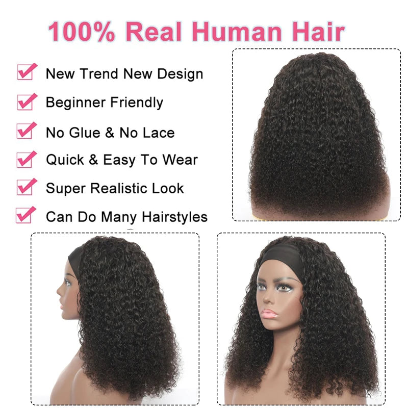 Headband Water Wave Human Hair Wigs Brazilian Scarf Wig