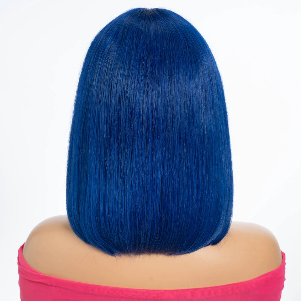 Highlight Blue Short Straight Bob 13x6x1 Lace Front Human Hair Wig