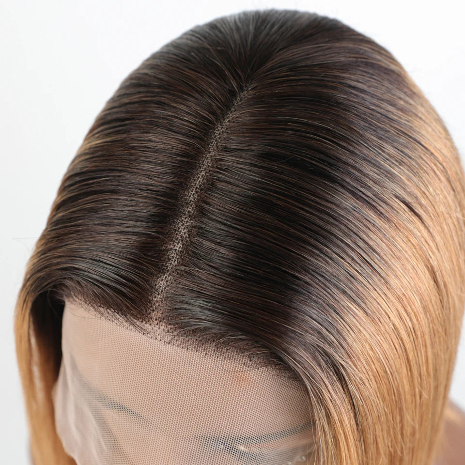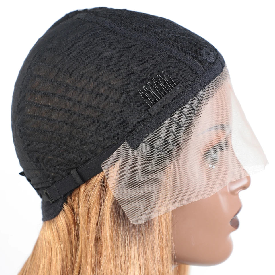 Ombre Gold Blonde Short Straight Bob 13x6x1 Lace Front Human Hair Wigs