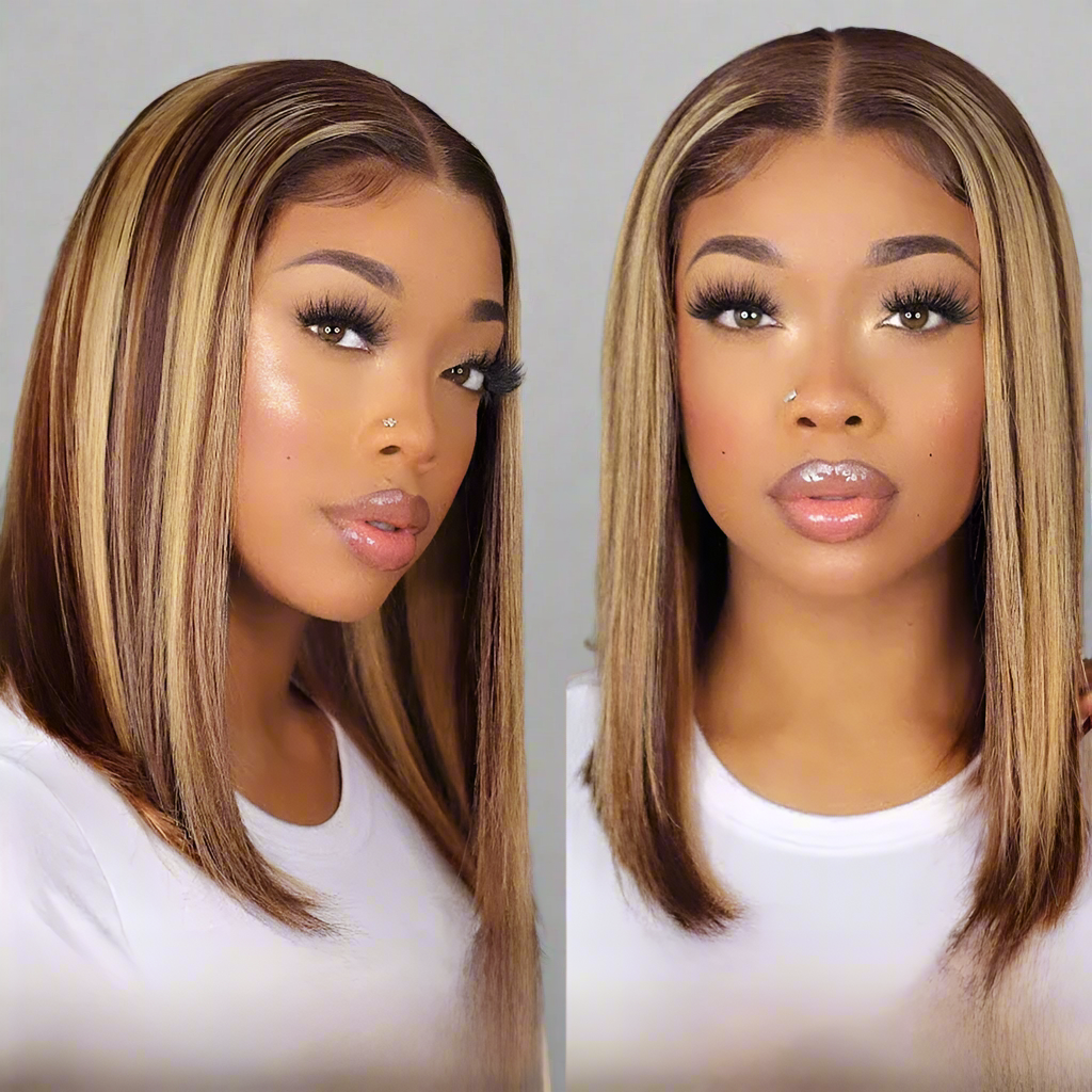 Straight Short Bob Wig 13x4 Highlight Lace Frontal Human Hair Wigs
