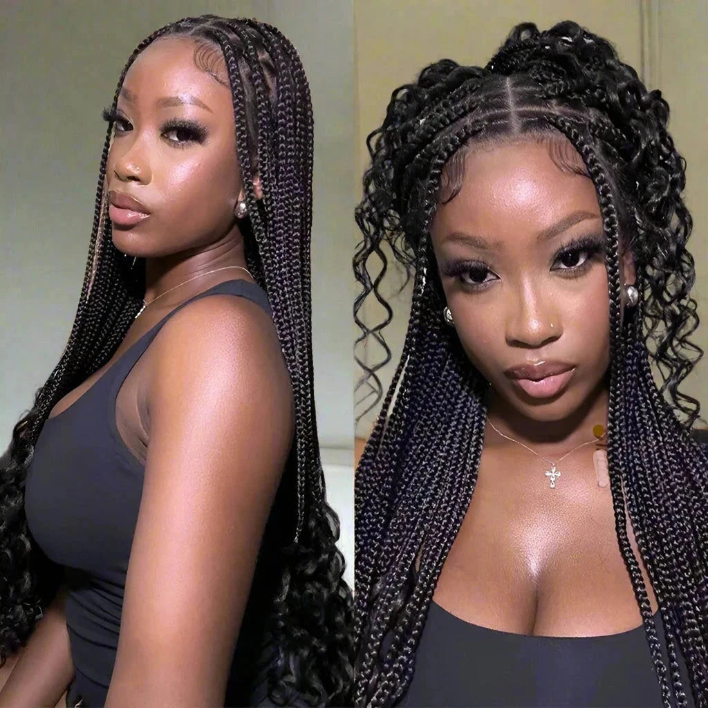 Synthetic 24'' Goddess Box Braids With Curl Ends Knotless Square Part